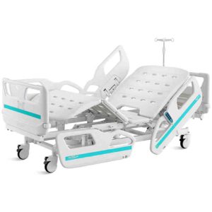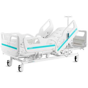 Pat electric spital cu 3 functii ZET6V destinat pacientilor cu mobilitate limitata, post-operator, pentru recuperare, ingrijire la domiciliu sau in context medical profesional. Reglajul electric ajuta la confortul pacientului si la usurinta lucrului pentru asistenti sau ingrijitori.