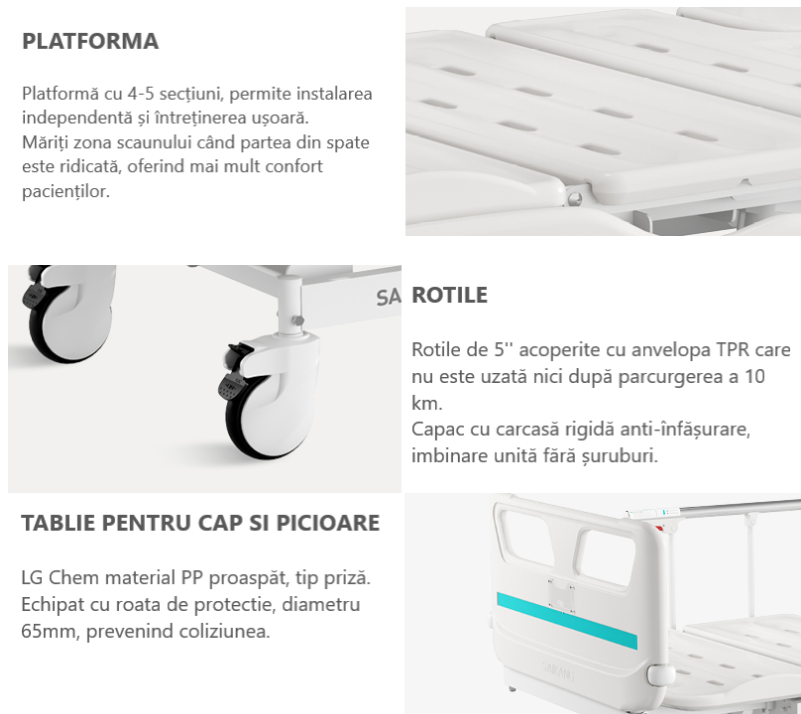 Optional: baterie back-up, control pentru asistenta, lumina de noapte, sistem CPR, extensie pat, etc.
