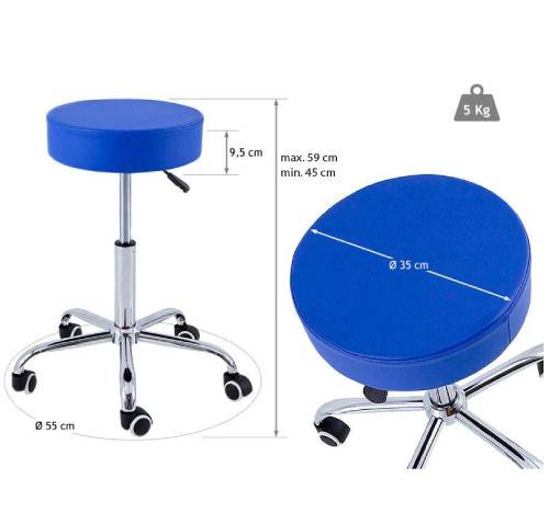 Taburet cu baza din otel cromat H 45/59cm cu spatar si finisare de calitate. Spuma de inalta densitate a sezutului permite o mai buna rezistenta a taburetului de-a lungul timpului. Permite usurinta in utilizare in timpul orelor lunigi de munca. Rotile ofera o alunecare controlata a taburetului, acesta putand fi strecurat chiar si in incaperile cu spatiu limitat. Este recomandat pentru dentisti, fizioterapeuti, masori.